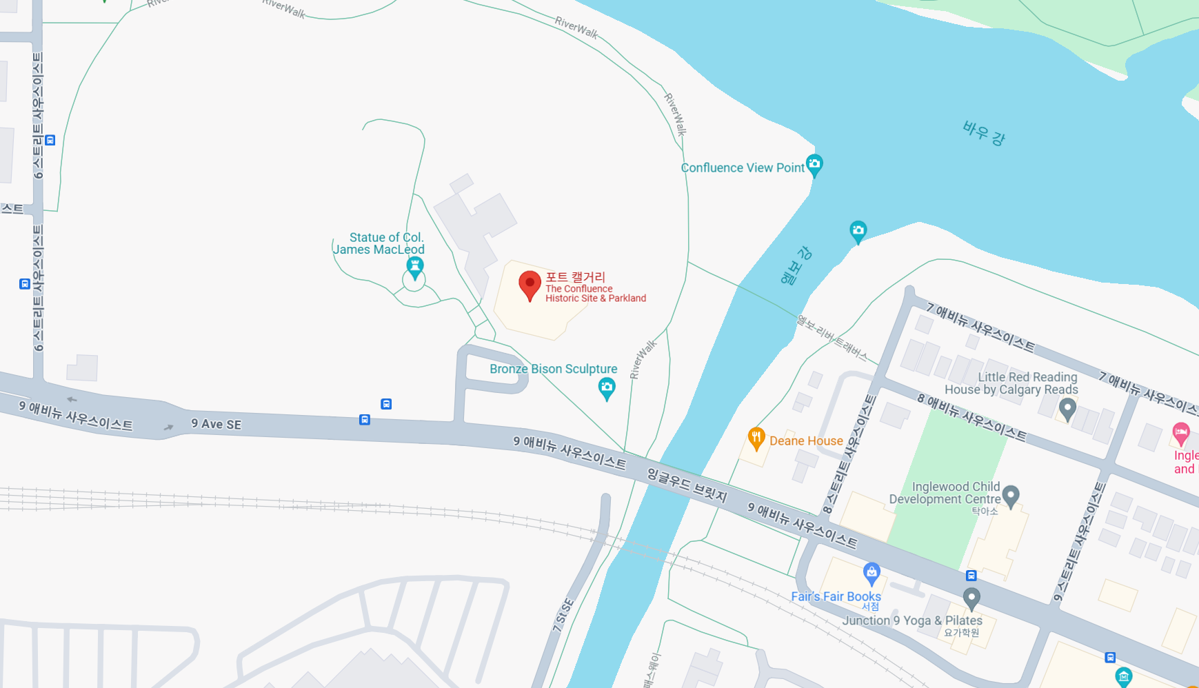 다운타운에서 동쪽으로 가다보면 보우강과 엘보우강이 합류하는 곳에 멋진 건물이 하나 있습니다. 포트 캘거리입니다. 1875년 기마경철이 쌓은 역사적인 장소이며 지금은 공원으로 꾸며져 있습니다. 당시를 재현해 놓은 영상과 전시가 있으며 요새 감독관의 주거지였던 건물이 그대로 유지되어 있습니다. 저녁에는 디너쇼가 있으며 예약을 하시는 게 좋습니다.